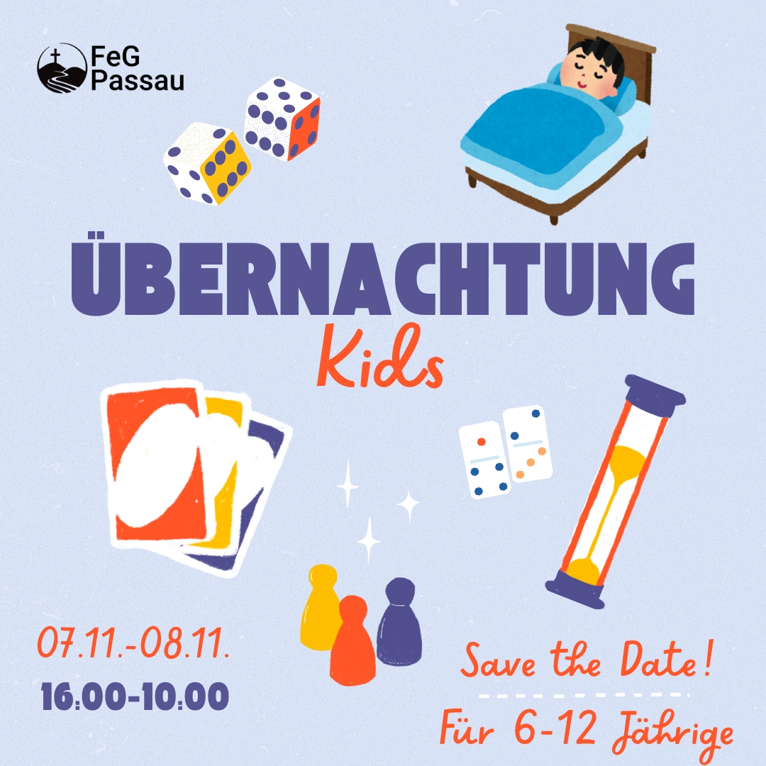 Deshalb planen wir für alle Kinder von 6 bis 12 Jahren einen bunten Spiele-Nachmittag/-Abend mit Snacks, Holzbausteinen und einem spannenden Programm. Danach werden wir die kleinen (4 bis 6 Jährige) verabschieden und noch Spannendes in der Blauen Donau erleben! Wir freuen uns auf einer erste Gemeindeübernachtung.